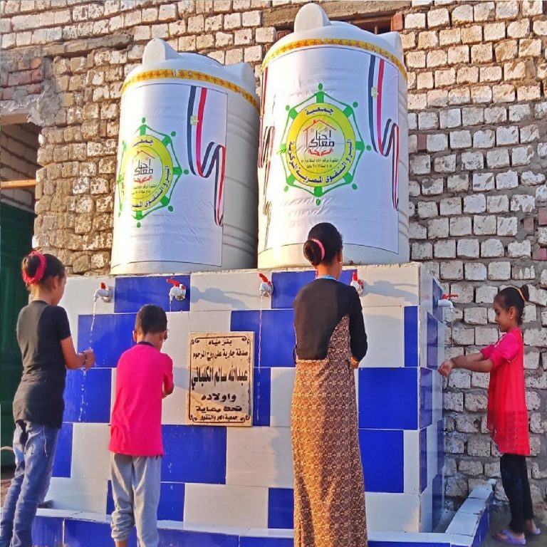 يوجد قرى لم تصل إليها المياه مما يدفع أهالي هذه القرى للخروج إلى أماكن نائية تصل إلى 5 كيلو متر للحصول على المياه لذا عملت الجمعية على تلبية هذا الاحتياج من خلال عمل طلمبة مياه وآبار للمياه الجوفية وصولا لمياه نقية للشرب يخدم البئر منطقة سكنية بأكملها كما تم عمل وصلة مياه للمنازل و كانت معظم هذه الأعمال بمحافظات سيناء وبنى سويف وقنا.